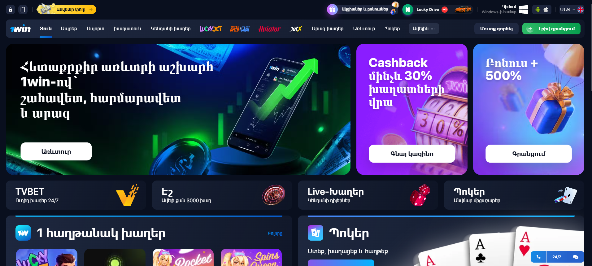 Վերջին 6 տարիների ընթացքում 1win Casino Armenia- ի պաշտոնական կայքի ժողովրդականությունը ակտիվորեն աճում է: Ընկերությունն օգտատերերին առաջարկում է ավելի քան 12000 խաղային ավտոմատ, կենդանի սեղաններ, սպորտային խաղադրույքներ և այլ զվարճանքներ: Գրանցվելուց հետո հաճախորդները ստանում են մինչև 500% իրենց առաջին ավանդների համար: Գործառնական աջակցությունը տրամադրվում է շուրջօրյա: Ամեն շաբաթ կազինոյում կարող եք մասնակցել մրցաշարերի և ջեքփոթի խաղարկություններին: Հաշիվ բացելիս գործարքների հեշտացման համար խորհուրդ է տրվում անմիջապես ընտրել ՀՀ դրամ: Չնայած հայերեն տեղայնացման բացակայությանը, նախագիծը գոհացնում է իր հարմար ինտերֆեյսով և լավ մտածված նավիգացիայով:
